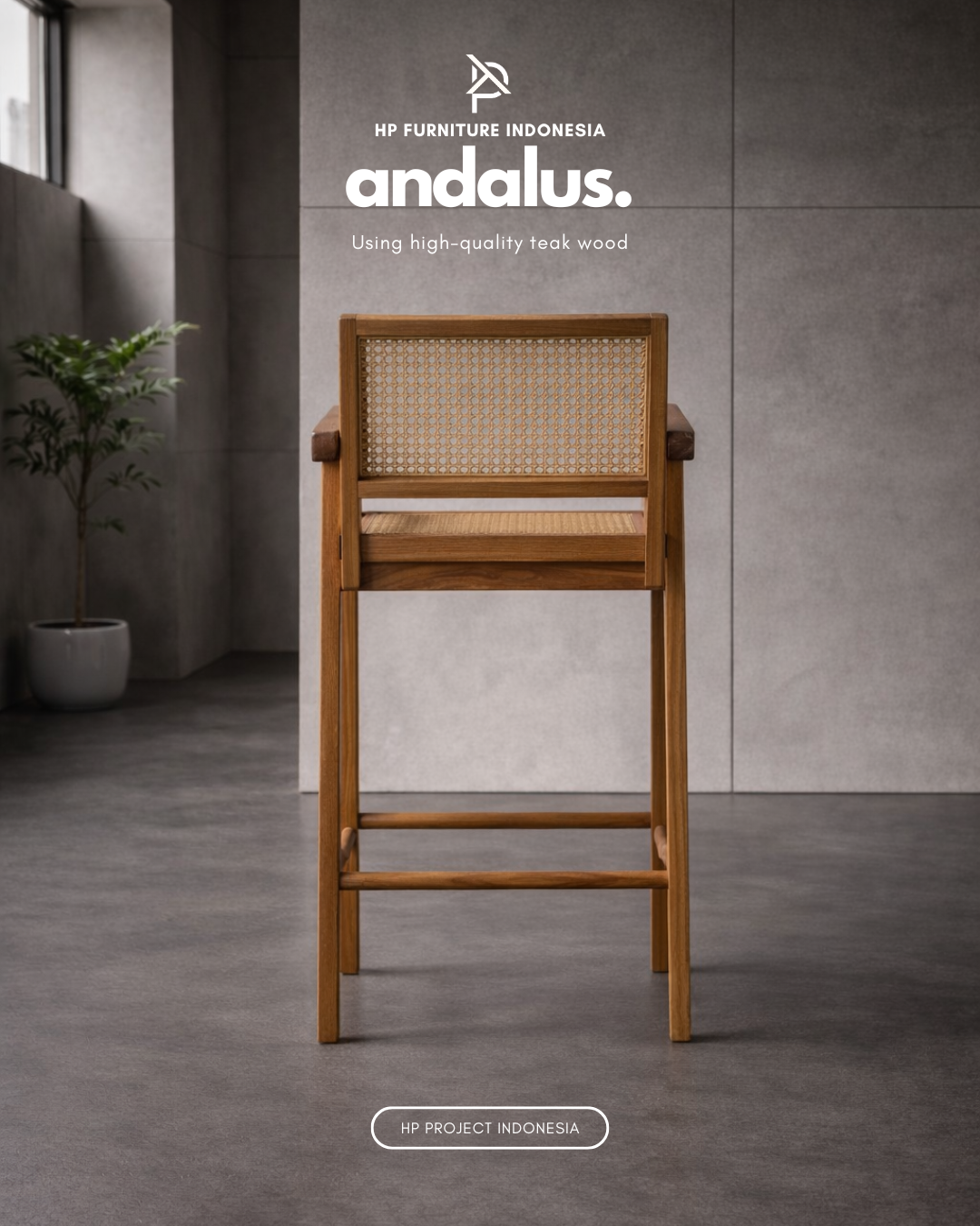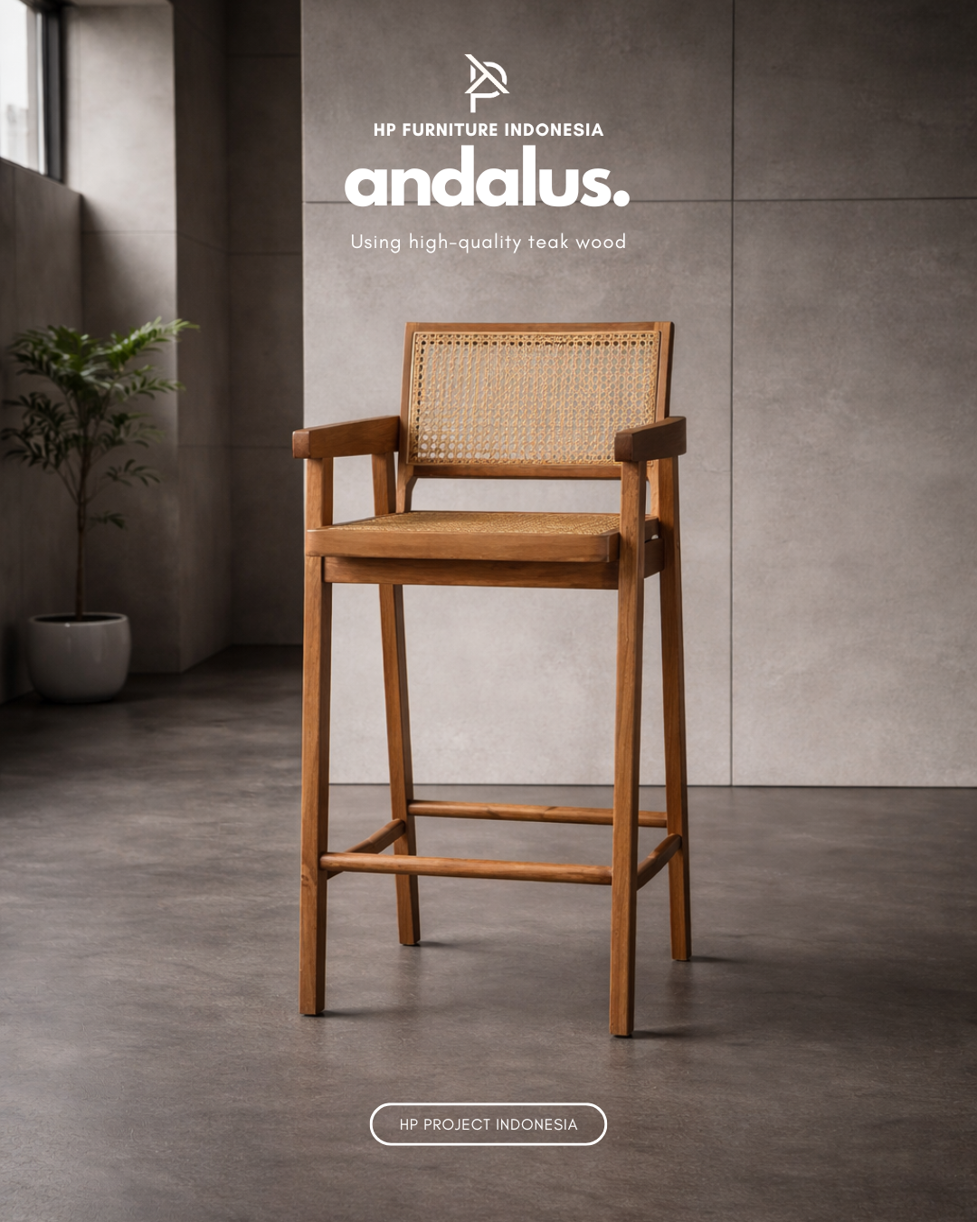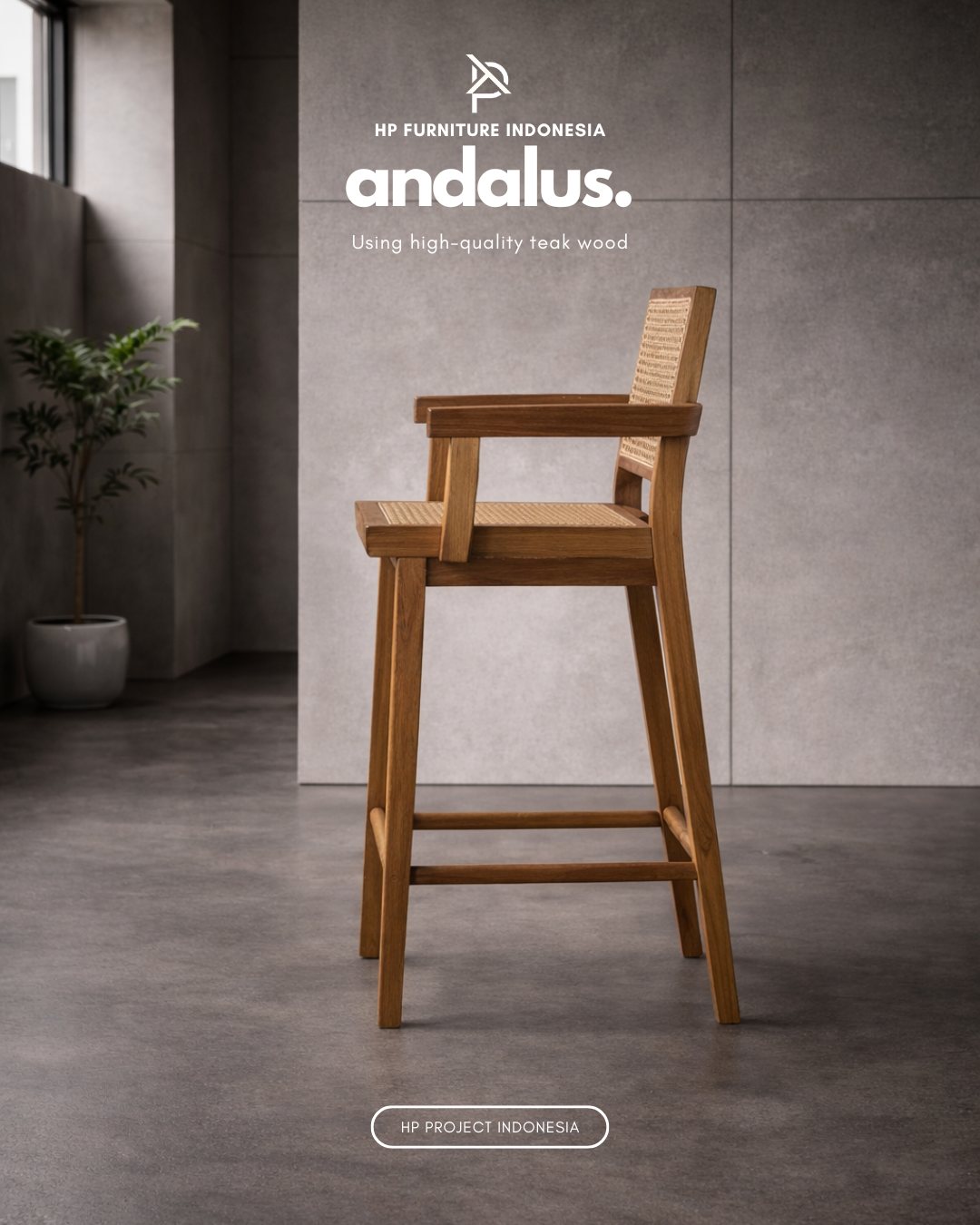 Andalus Furniture Premium Minimalist Teak Wood Bar Stool
