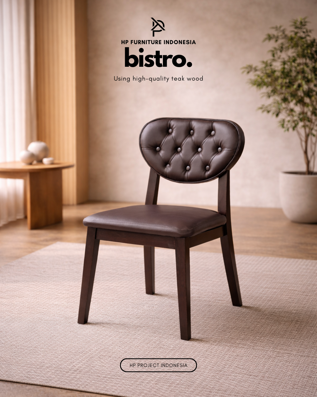Bistro Furniture Premium Minimalist Teak Wood Dining Chair