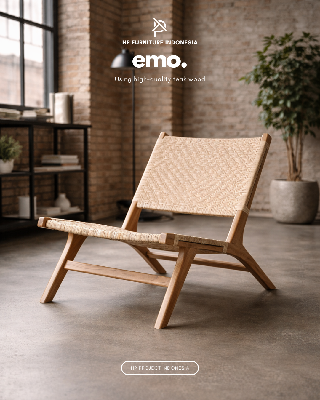 Emo Furniture Premium Minimalist Teak Wood Lazy Café Chair
