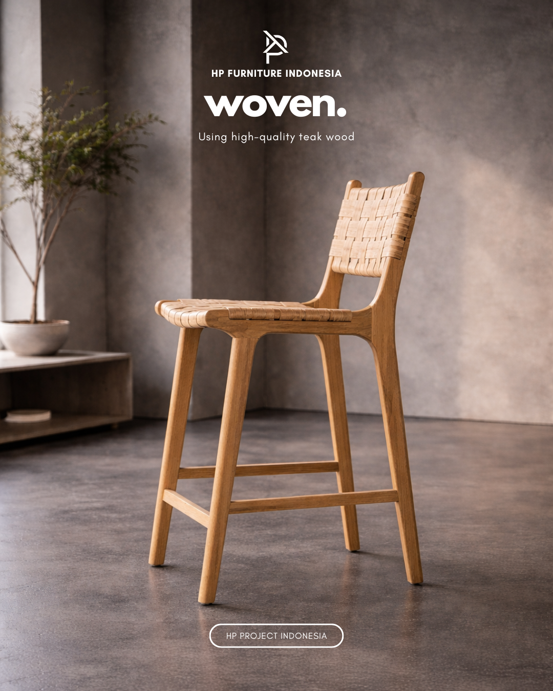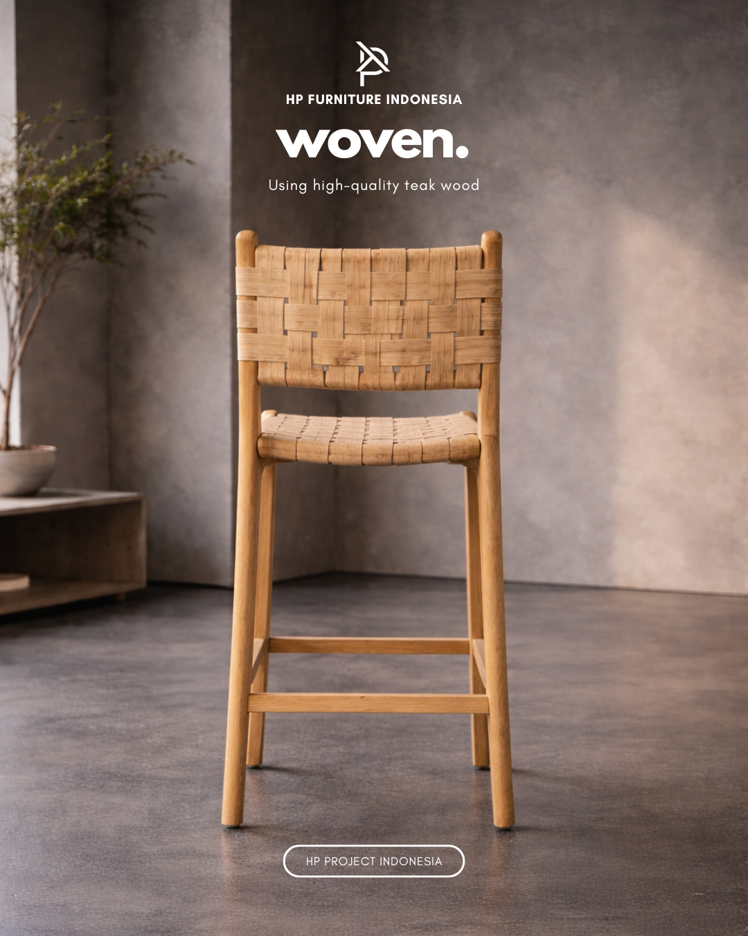Woven Furniture Premium Minimalist Teak Wood Bar Stool